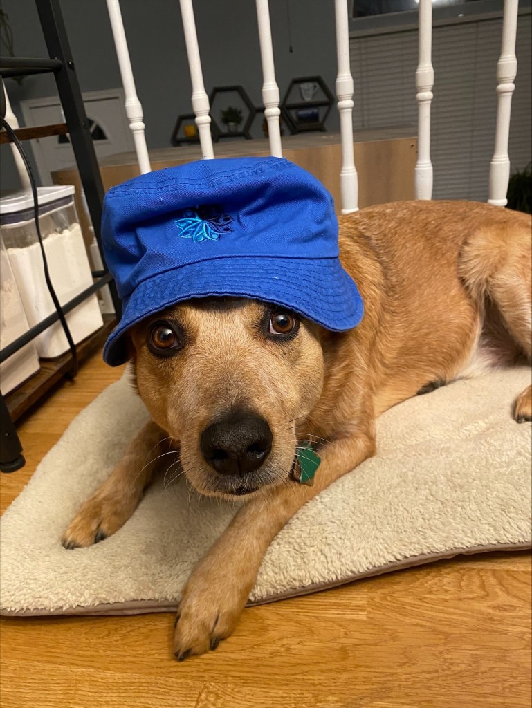 Serena Wagoner is a fellow in Child Abuse Pediatrics at Children’s Mercy Hospital. Photo displays Dr. Wagoner’s four-footed friend sporting the positively stylish CAPNET hat!
